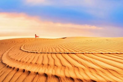 正式走进腾格里沙漠,在辽阔的天地大步行走感受过明长城的沧桑,我们将正式走进腾格里沙漠,在这片被称为“天”的沙漠中行走,看延绵不绝的沙丘,当一片美丽的沙漠绿洲出现在眼前,那便是我们今天的营地——梦柯湖。